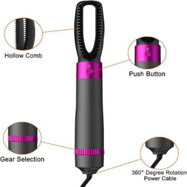 Interchangeable Attachments: Designed for ultimate flexibility, the set includes interchangeable attachments that cater to various styling needs. Switch between brush heads to achieve the desired look, whether you're aiming for sleek straight locks, bouncy curls, or voluminous waves. The easy-to-change attachments make styling your hair a breeze.