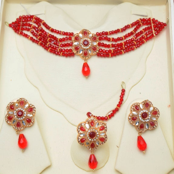 1. Elegant Style   Red Choker  , Earing , Bindiya