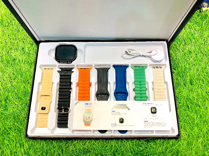 Product Details of 7in1 Ultra Smart Watch With Straps Metal Ocean Rubber Nylon Wireless Charger Bt Call In Ultra SmartwatchIntroducing the 7in1 Ultra Smart Watch, a game-changer in wearable technology. Packed with an array of cutting-edge features, this watch is designed to enhance your lifestyle like never before.With its sleek and stylish design, this watch comes with interchangeable straps made from high-quality materials such as metal, ocean rubber, and nylon. Choose a strap that matches your mood or outfit effortlessly.No more tangled wires or hassle of carrying around charging cables. The wireless charger included with the smartwatch ensures convenient and fast charging on the go. Stay connected without interruption.Experience the convenience of hands-free calling directly from your wrist. With Bluetooth call functionality, you can make and receive calls seamlessly without reaching for your phone.This ultra smartwatch is a perfect companion for those who value style, functionality, and versatility. Get ready to elevate your wearable experience with the 7in1 Ultra Smart Watch.